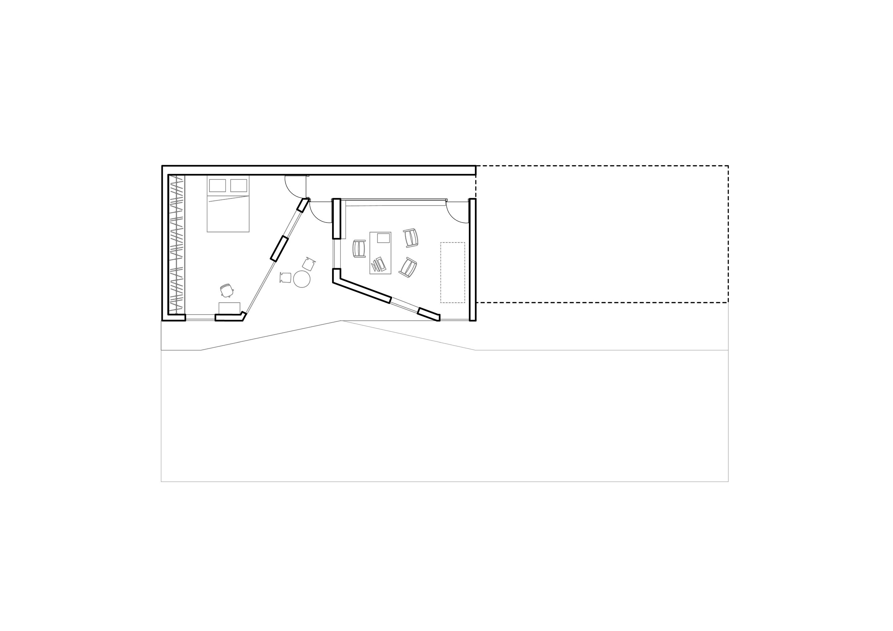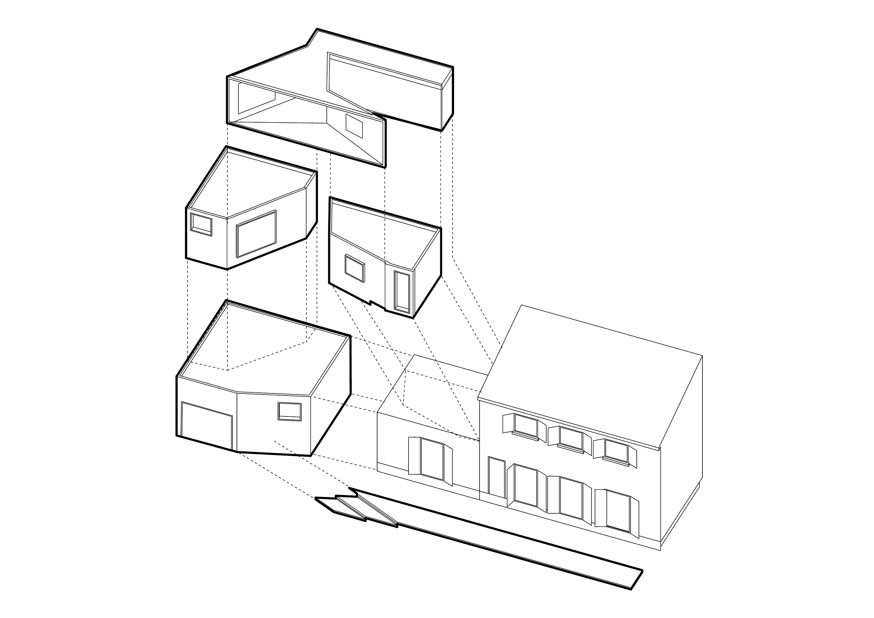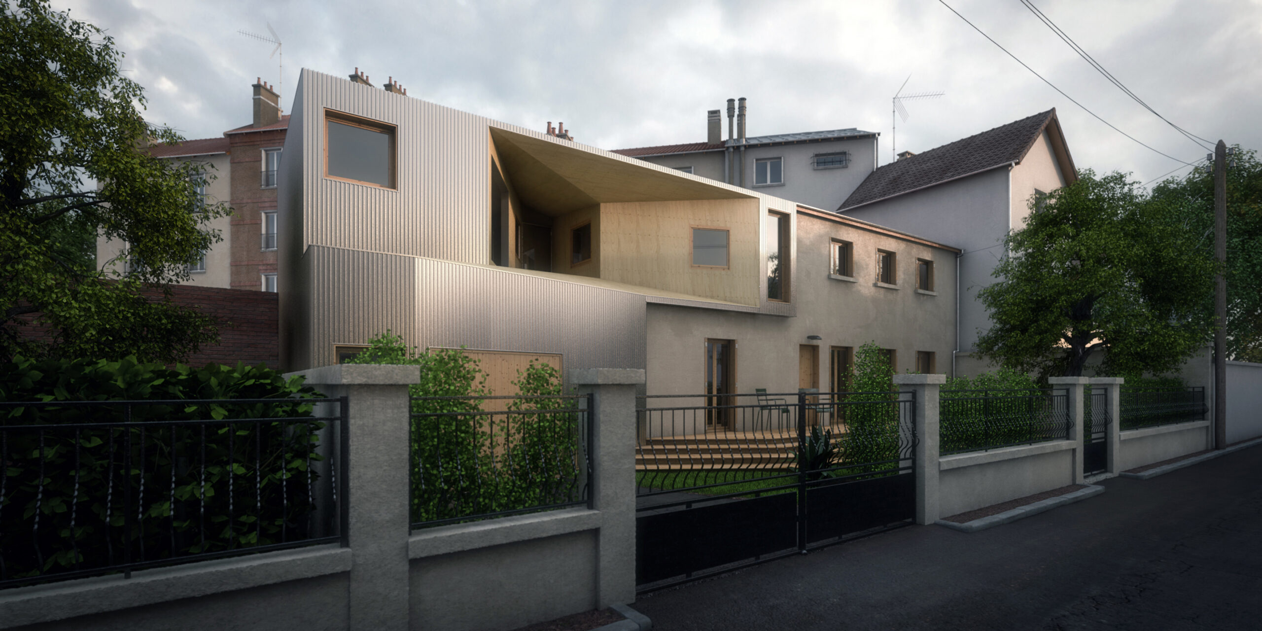 Situé dans une paysage urbain fragmenté de la proche banlieue parisienne, l’extension est conçue pour un couple constitué d’une psychanalyste et d’un ingénieur. Le bâtiment articule les principales fonctions autour d’une véritable pièce à vivre, la loggia qui permet aux propriétaires de profiter d’une terrasse en hauteur et apporte également sa singularité au projet.